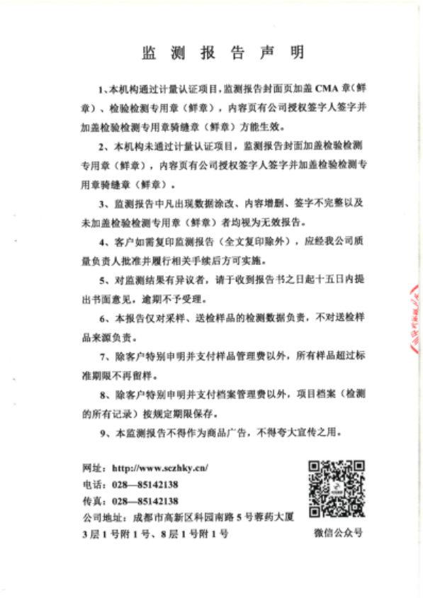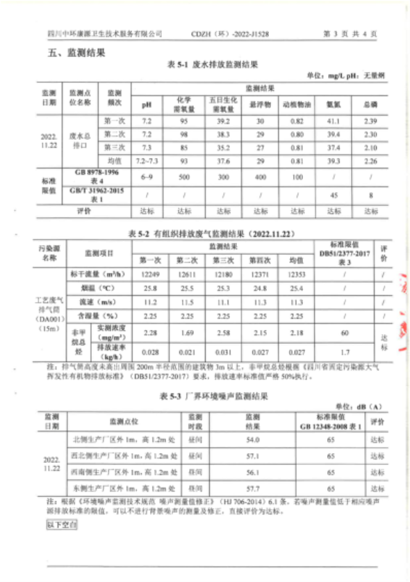 本年度有组织废气排放监测委托四川中环康源卫生技术服务有限公司进行采样,检测报告附后。